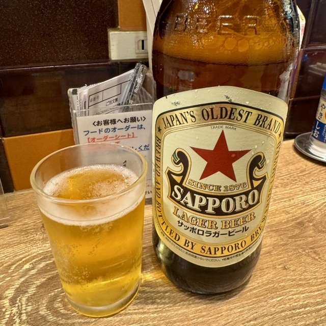 しかも瓶ビールは立ち飲みの方限定という謎ルールがありますw料理の量も多くないので、こまごま色々食べたいという方には向いているかもです。この日は女性1人の立ち飲み客もいました。